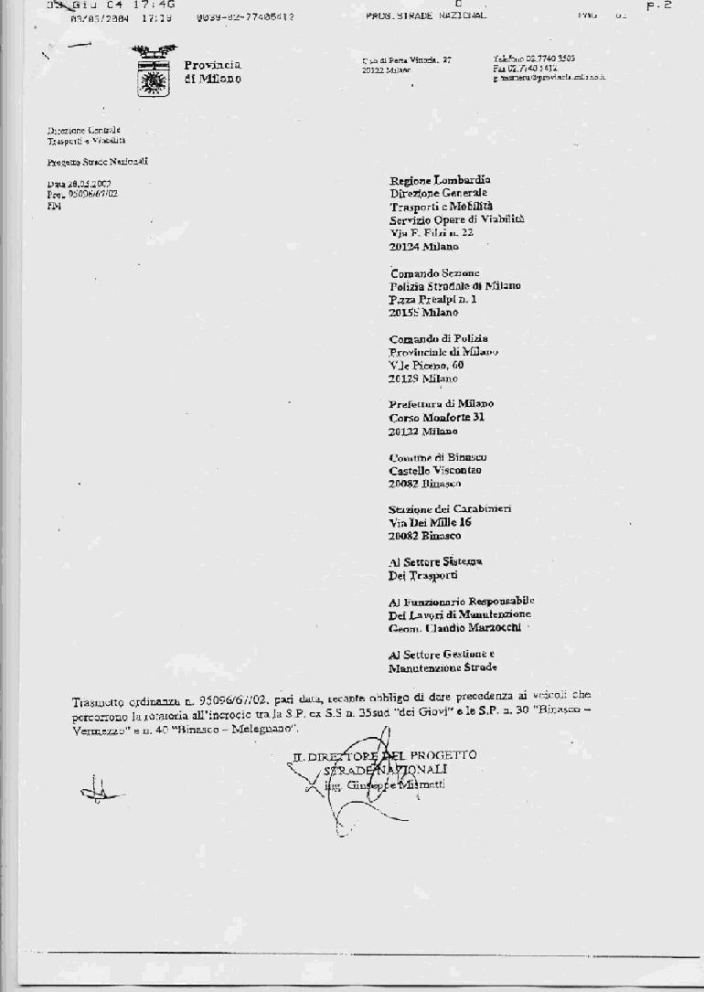 Comunicazione dell'Assessore alla Viabilità relativamente agli interventi della Provincia sulla rotonda SP 35 dei Giovi